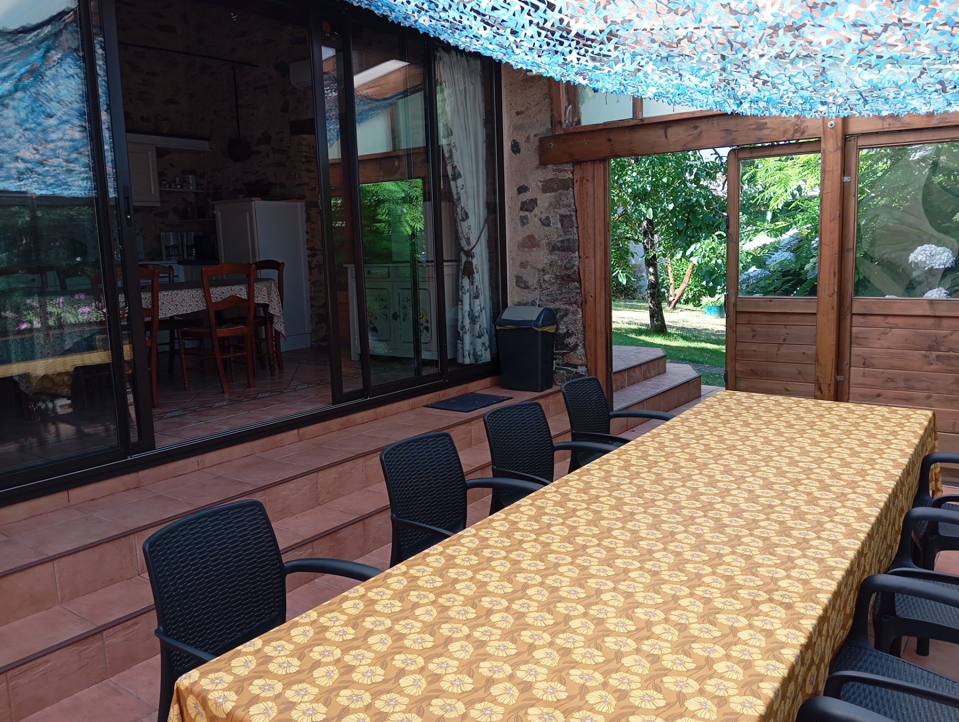 - Terrasse couverte : idéale pour réunions, ateliers, soirées, repas collectifs, avec différentes configurations possibles